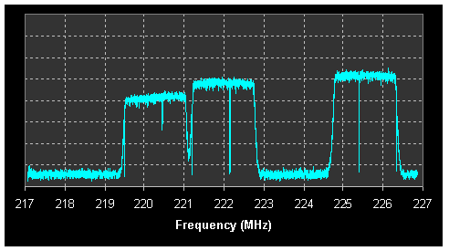 The three MUXs that are in use look like this on a spectrum analyser: