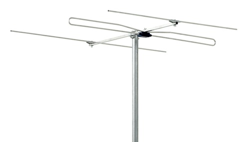 DAB is transmitted with vertical polarisation, so there's no debate about the mounting orientation of the aerial. The DAB operating frequency (around 200MHz) makes the dipole slightly less than half the size of an FM aerial: